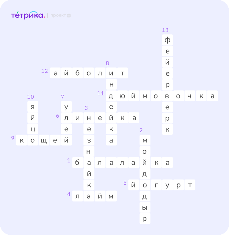 📌 Задание 3. Решите кроссворд. Найдите слово, в котором два звука Й. Какие слова пишутся с большой буквы?