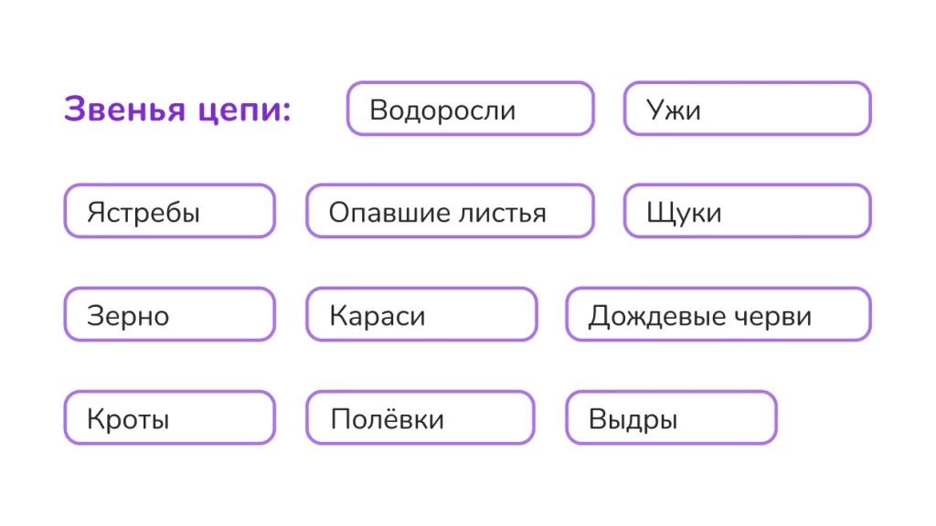 Составьте пищевые цепи из приведённых ниже организмов. Придумайте 2–3 собственных примера.