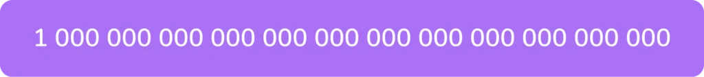 Итак, как же выглядит ундециллион? В учебниках математики его записывают коротко и элегантно как 1036. Но если мы захотим представить его во всей красе, то это будет единица, за которой следует 36 нулей .