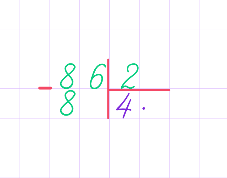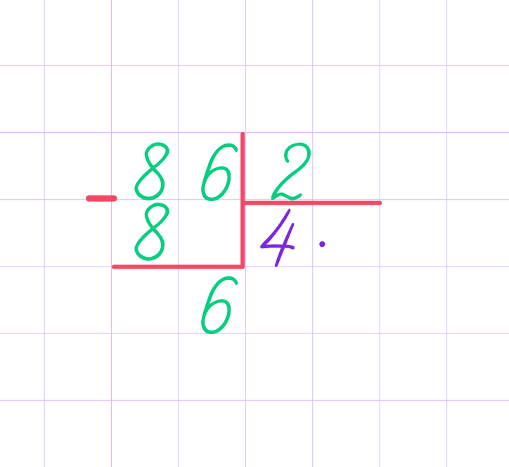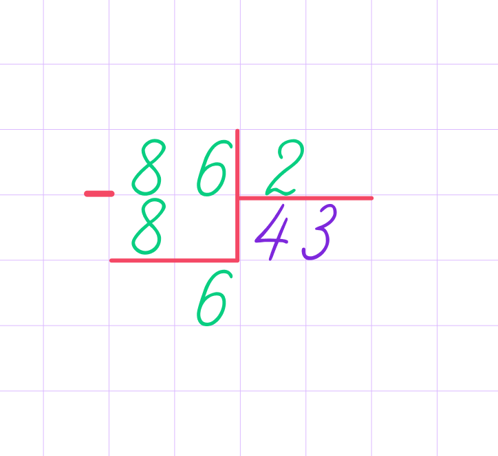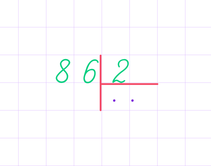 1. Для начала определим первое неполное делимое и узнаем, сколько будет цифр в частном. 8 можем разделить на 2, значит, 8 — первое неполное делимое, в частном будет первая цифра. После 8 есть ещё одна цифра, значит, и в частном будет ещё одна цифра — всего две цифры.