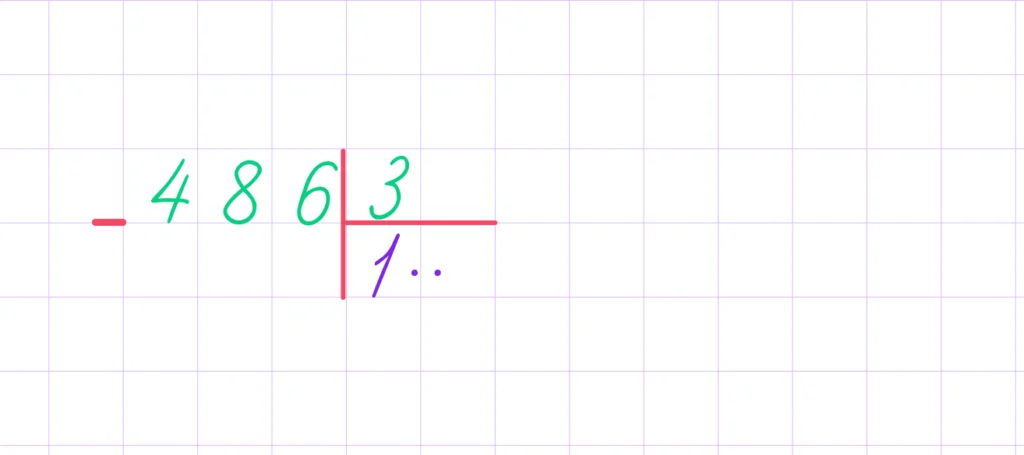 2. Затем разделим первое неполное делимое 4 на делитель 3. В результате получим 1.