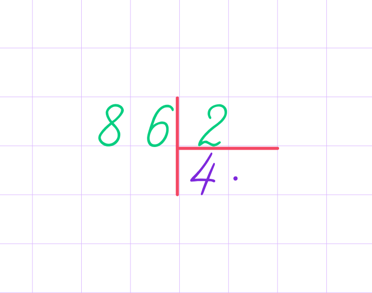 2. Разделим первое неполное делимое 8 на делитель 4 и запишем в частное ответ — 2.