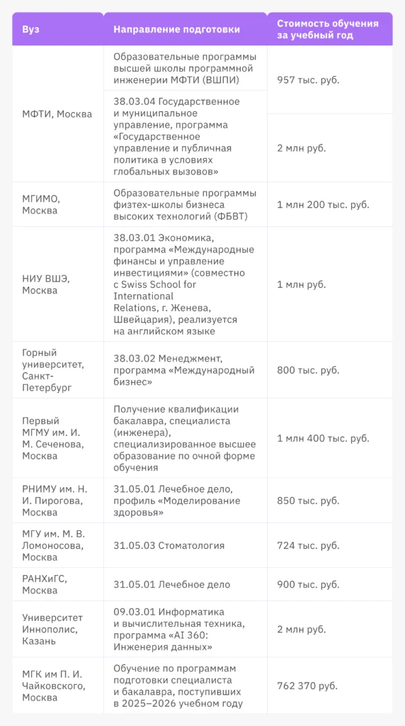 10 самых дорогих вузов России в 2026 году