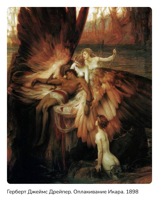 Икар стал двойственным символом. С одной стороны — это предупреждение: нарушаешь запреты и теряешь чувство меры — погибаешь. С другой — образ человеческой дерзости и мечты: тянуться к чему-то прекрасному и недостижимому, даже если это опасно. Поэтому его образ вдохновляет поэтов и художников до сих пор.