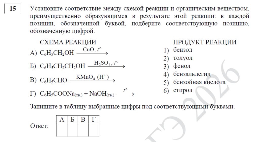 Задание 15. Здесь выпускников проверяют на знание органической химии.