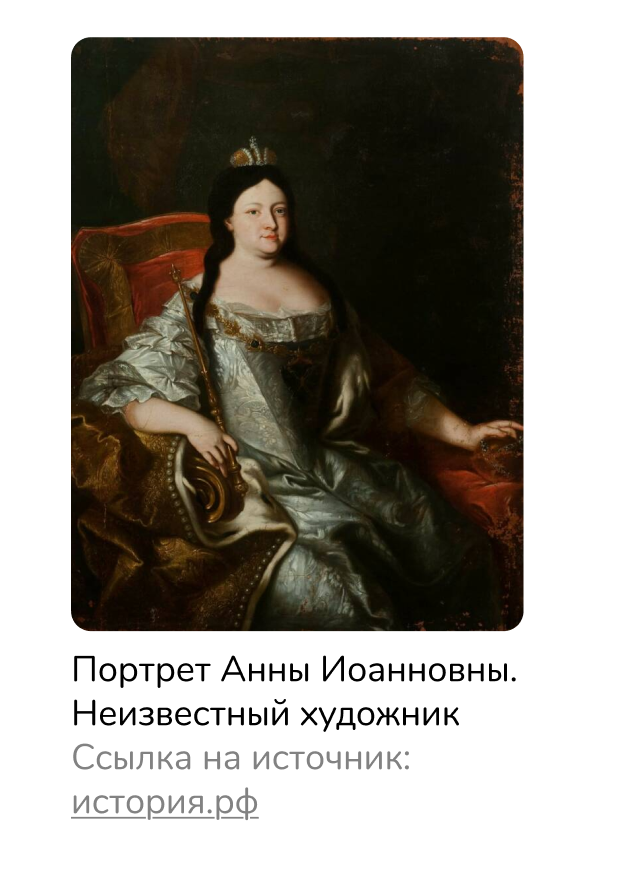 - 1730–1740 гг. — правление Анны Иоанновны.