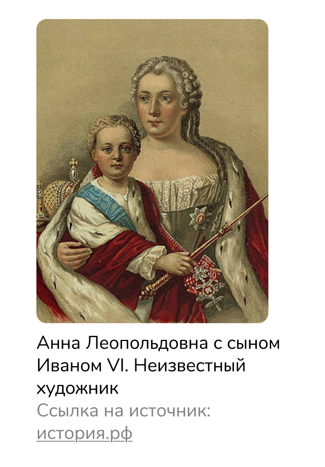 - 1740–1741 гг. — правление Ивана VI Антоновича.