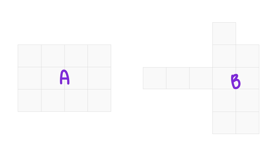 На Рисунке 1 изображены две фигуры А и В. Площадь фигуры А равна 12. Площадь фигуры В, являющейся прямоугольником, тоже равна 12.