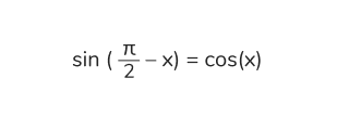 - cos(π − x) = cos(π)cos(x) + sin(π)sin(x)