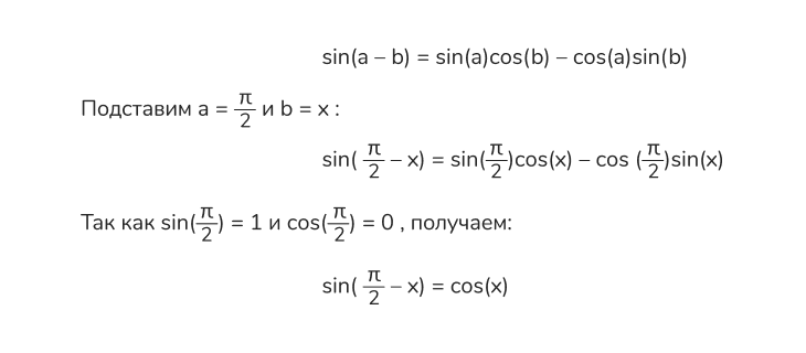 - cos(a − b) = cos(a)cos(b) + sin(a)sin(b)