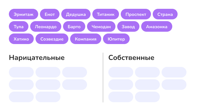 Если ребёнок испытывает затруднения в определении разряда имён существительных по значению, часто допускает ошибки правописании имён собственных и не умеет применять правила, воспользуйтесь материалами статьи для тренировки.
