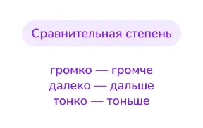 Некоторые наречия на -о/-е, образованные от качественных прилагательных, могут иметь степени сравнения. Это их постоянный признак, который также необходимо указывать.