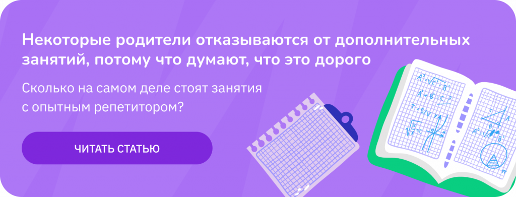 Изучите табель успеваемости за прошлый год вместе с ребёнком. Обсудите, по каким предметам для вас важно улучшить результаты. Определите, какие отметки школьник исправит сам, а в каких предметах ему нужна помощь. Чаще всего к репетитору обращаются в трёх случаях. Во-первых, если на уроках у ребёнка вопросов нет, а сделать домашнее задание не получается. Во-вторых, если не хватает конкретных навыков или не выходит самостоятельно освоить тему, которую ученик пропустил по болезни или не усвоил по другой причине. И, в конце концов, бывает так, что у ребёнка есть способности, которые невозможно развивать на обычном уроке. Тогда репетитор помогает углублённо изучать предмет и готовиться к олимпиадам.