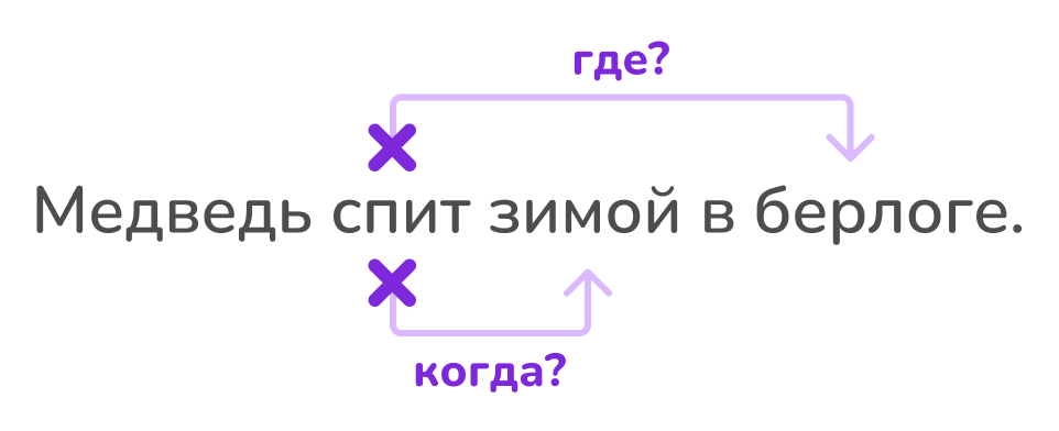 5. Уточняющие члены предложения, поясняющие как, где или кто именно совершает действие, например: