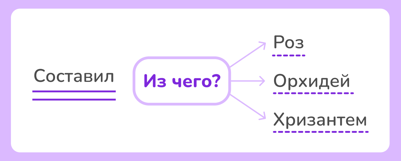 | Однородные дополненияКого? Чего? Кому? Чему? Кого? Что? Кем? Чем? О ком? О чём? | |