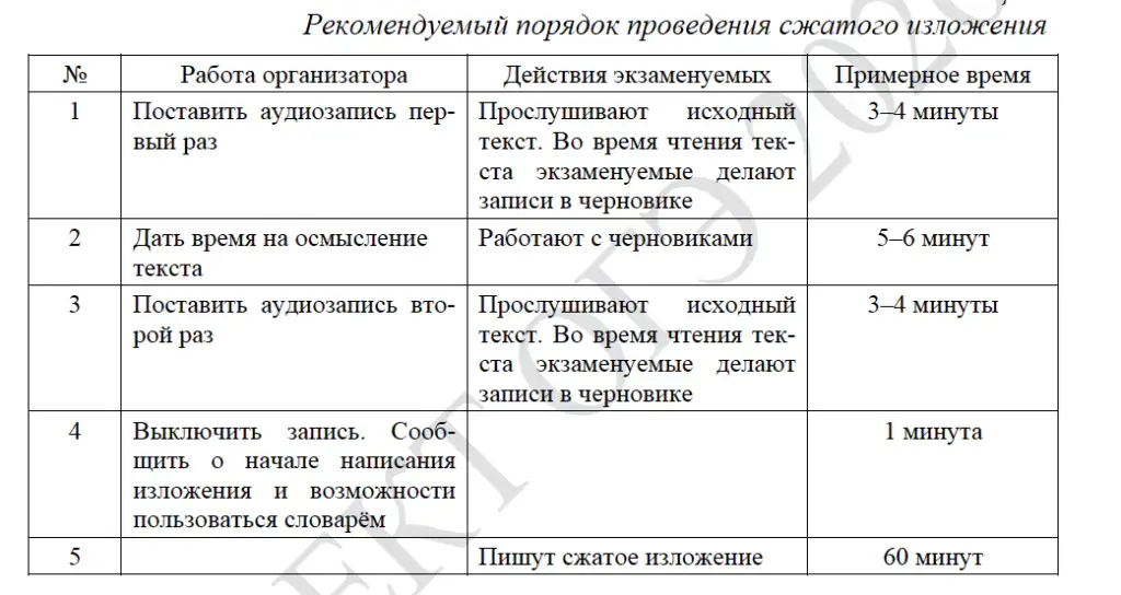 В первом задании важно внимательно прослушать текст и сделать заметки. При сжатом изложении необходимо упомянуть каждую микротему. Аудиозапись материала для изложения включат дважды. Будьте готовы услышать текст любого литературного жанра. Чтобы набрать 6 баллов за изложение, писать нужно грамотно, логично и применять приёмы сжатия текста.