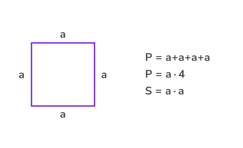 Благодаря равенству всех сторон периметр и площадь квадрата легко вычисляются.