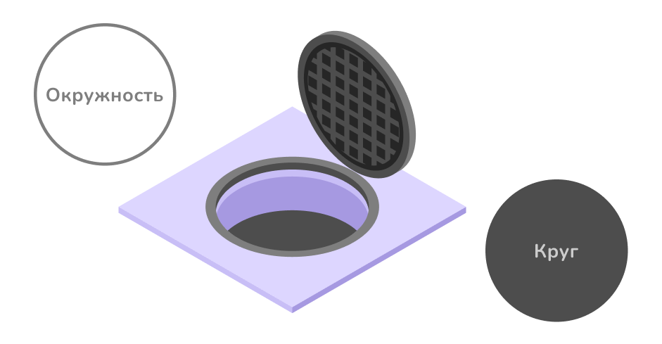 6. Окружность — это замкнутая линия, точки которой равноудалены от её центра. Круг же  — это часть плоскости, ограниченная окружностью. Если окружность  — это забор, то круг  — земля, которая находится внутри.