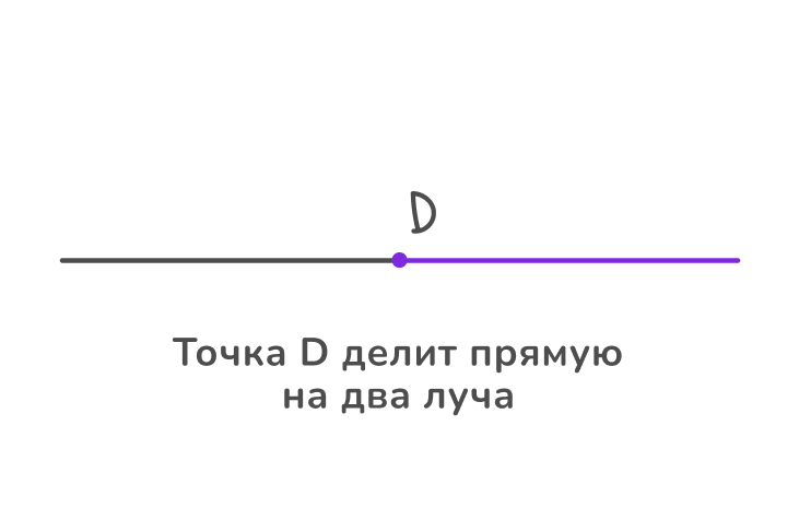 Если на прямой поставить только одну точку, то она разделит линию на два луча. Луч имеет начало, но не имеет конца, поэтому может быть бесконечно продолжен только в одну сторону.