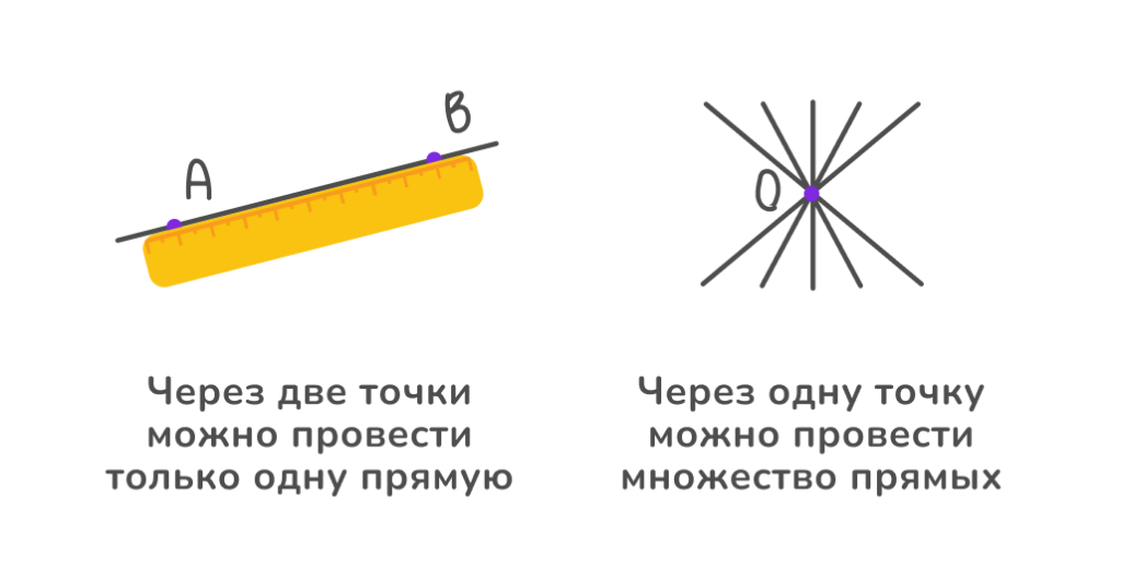 2. Прямая состоит из множества точек, но через две точки можно провести только одну прямую.
