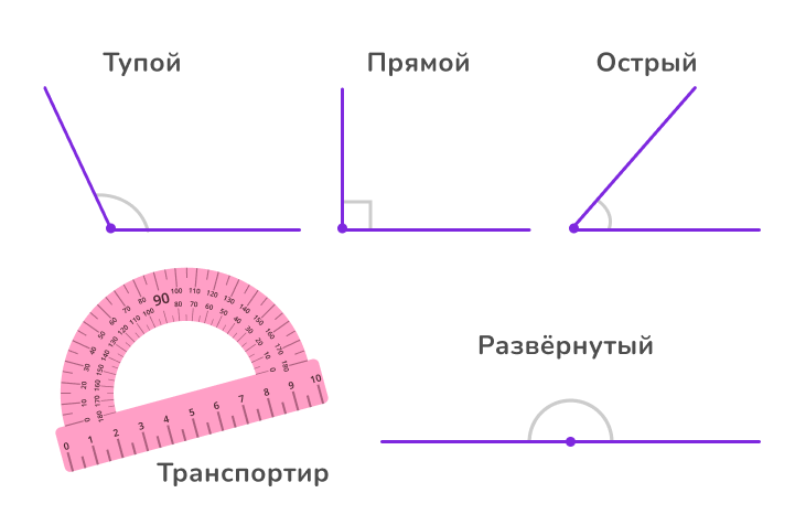 3. Углы бывают прямые, острые,тупые и развёрнутые.