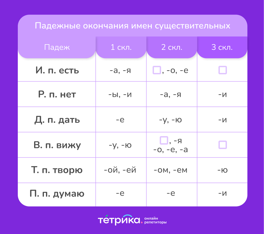Таблица падежных окончаний существительных. Как правильно написать безударное окончание