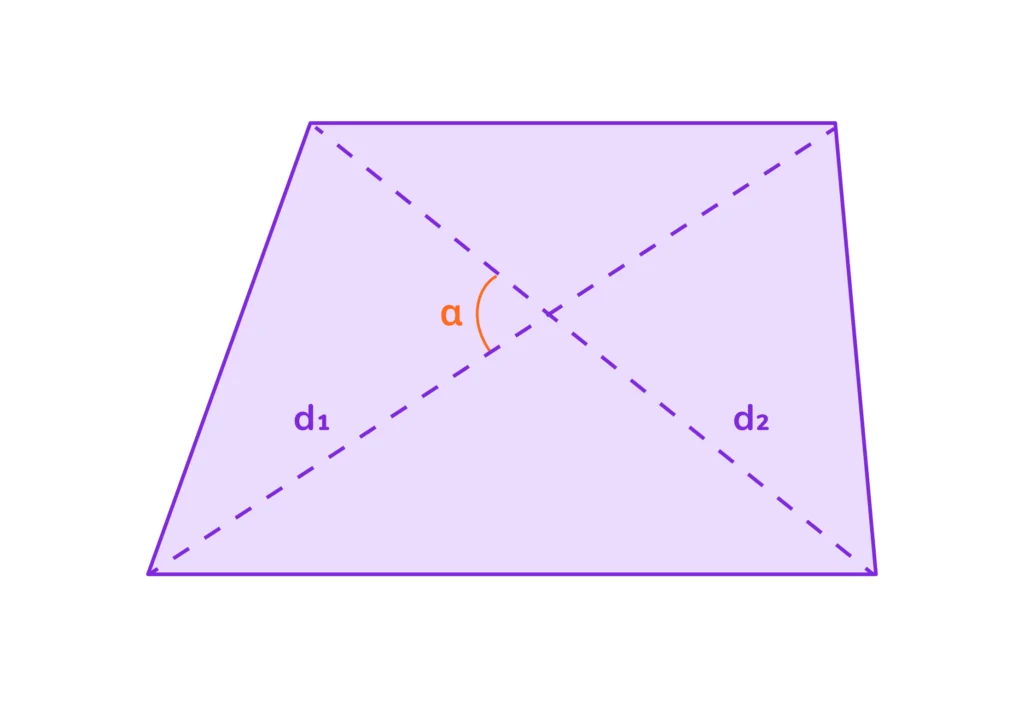 Если известны длины диагоналей (d₁ и d₂) и угол между ними (α):