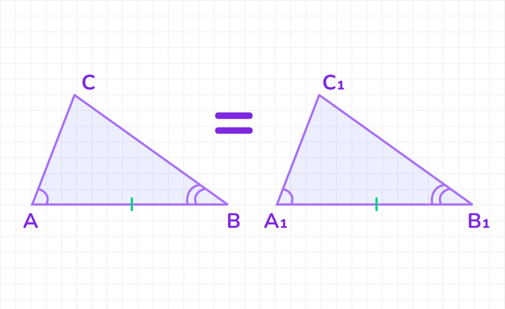 Формулировка: если сторона и два прилежащих к ней угла одного треугольника соответственно равны стороне и двум прилежащим к ней углам другого треугольника, то такие треугольники равны.