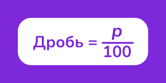 Чтобы перевести любой процент p в дробь, используйте формулу: