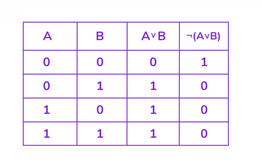 2. ¬(A ∨ B) (НЕ) — инвертирует результат операции A ∨ B.