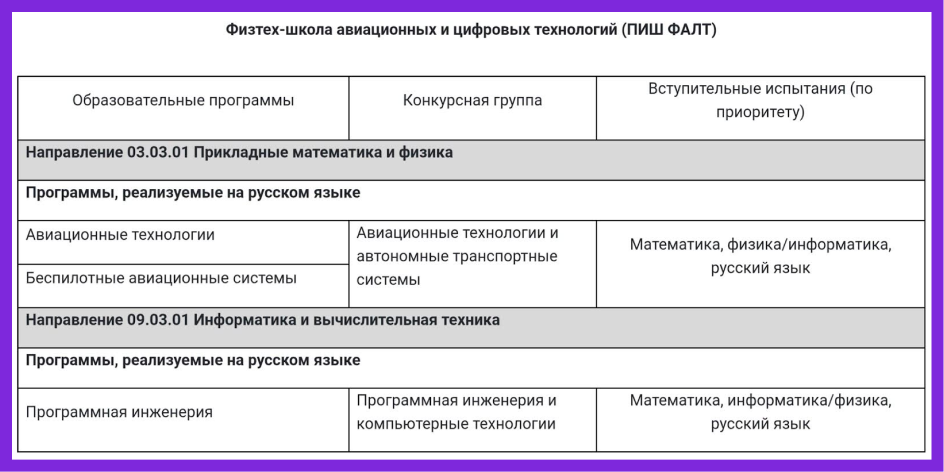 ⚙️ «Техническая» комбинация: профильная математика, физика, информатика и ИКТ. Такой набор открывает дорогу на большинство инженерных и технических направлений. С этими предметами можно попробовать себя в IT, машиностроении, электронике, прикладной математике и на многих других востребованных специальностях. Например, в МФТИ: